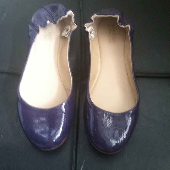 Size 7 Missimo patent leather flats with elastic gathering for a firm fit. Like new!