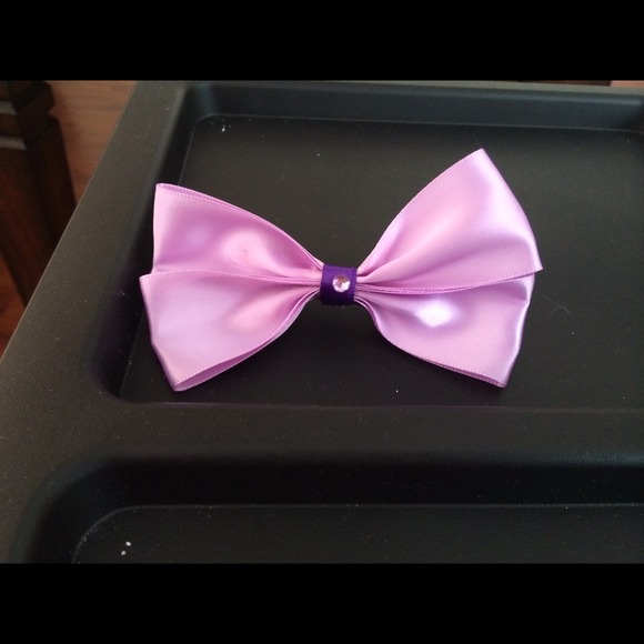Simple boutique bow with purple accents and a rhinestone. Order your own custom bow at bowsbyari@gmail.com! ๐๐