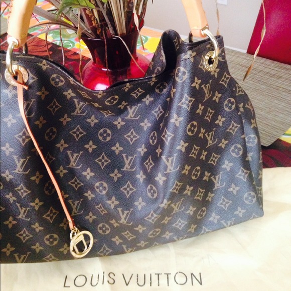 This is a replica of an LV Artsy. Made with leather. Looks exactly like the LV artsy