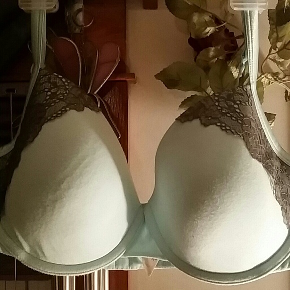 Absolutely beautiful mint green bra with grey lace overlay. This bra has been worn MAYBE 3 times and I lost weight, so now it no longer fits. It was bought at Lane Bryant so it us equivalent to Victoria's Secret. Very comfortable, and in LIKE NEW CONDITION.