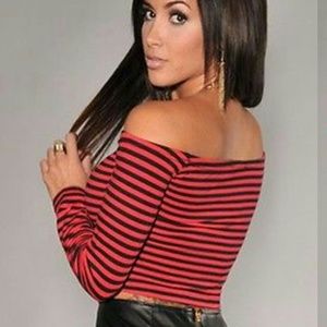 Brand new striped red off shoulder crop top! Stretchy & super cute
