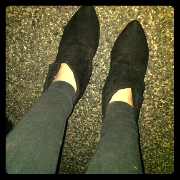 These stylish black booties go with anything! Jeans, dresses, leggings, embellished tights.. You name it. Worn two times, and have been sitting in my closet since! (There's a little dust- but I can obviously brush it off. I just wanted y'all to get the general idea :) )