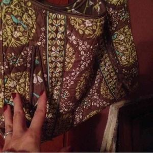 Lovely fall purse with matte greens and Browns..a subtle pop of color to any fall outfit. Two front zipper pockets add the perfect place for a cell phone!