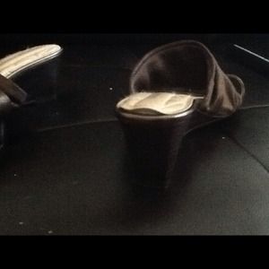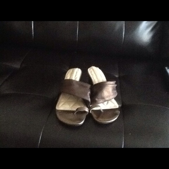 Comfortable bronze shoes. Worn a few times. There is a little lifting on the inside, shown in picture