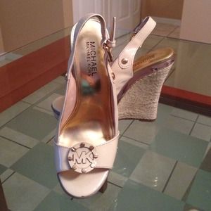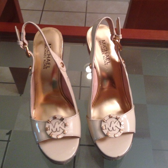 Beautiful Michael Kors nude wedges , like new , they need to be taken out 👠 I wore them twice ,