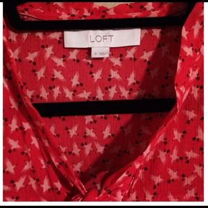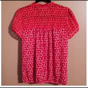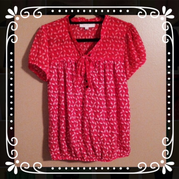 LOFT Cap-sleeve red print blouse. Super cute short sleeve blouse from Ann Taylor LOFT. Matching print, slightly sheer fabric at top. The rest of the shirt is not sheer though so no need to wear a cami underneath. Only worn a few times. Perfect condition.