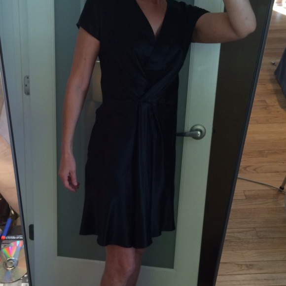 Banana republic 50% silk 42% azlon, fully lined, faux wrap dress, pull-on styling, fits like a 0/2. Excellent condition, worn only once. Looks great belted – belt not included.
