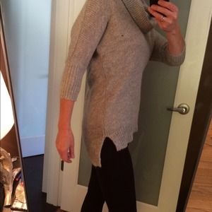 Three-quarter sleeve, cowl neck, gray with silver threads new with tags $88