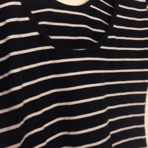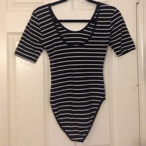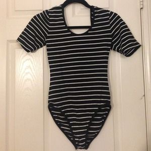 Essential black striped onesie with dipped back. Super comfortable. Perfect for layering.