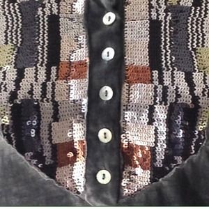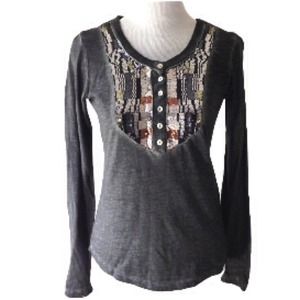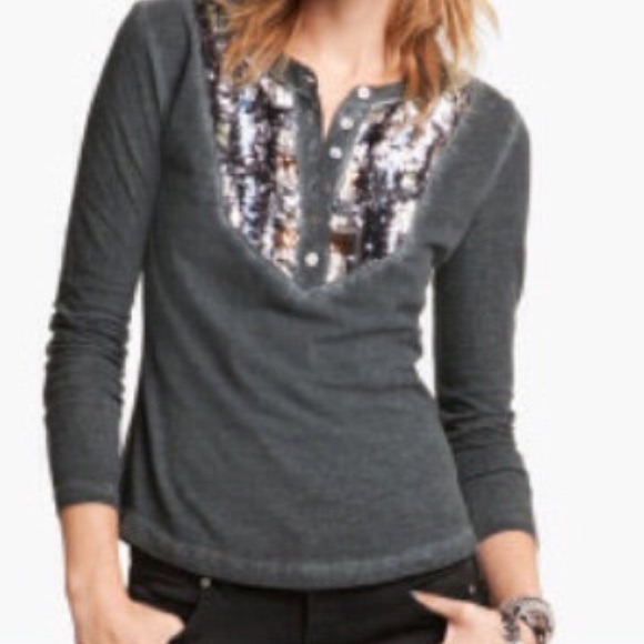 Free People Tiger Eyes Sequin Bib Henley. Vintage wash black lightweight, super soft henley with gorgeous sequin bib by Free People.
