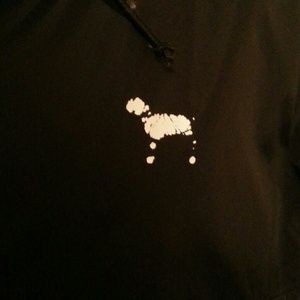 The size runs small/med. It has been worn once and washed once, so the dog is a little faded. It is still super cute:)