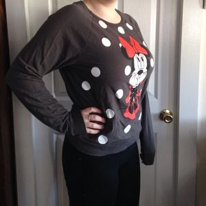 ❤️SOLD❤️Adorable sweater, perfect for the winter! Heather gray with white polka dots, Minnie Mouse decal. One of the spots is a tiny bit dis colored but it's barely noticeable!! Prices always negotiable :)