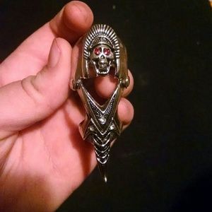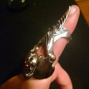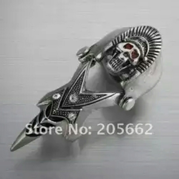 Rhinestone Gothic Jewelry Skull Finger Armor Ring. Not sure about this ring's size, but it fit all of my fingers which should cover about sizes 9, 10, 11, 12, and 13in women's.