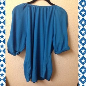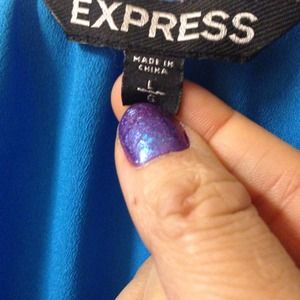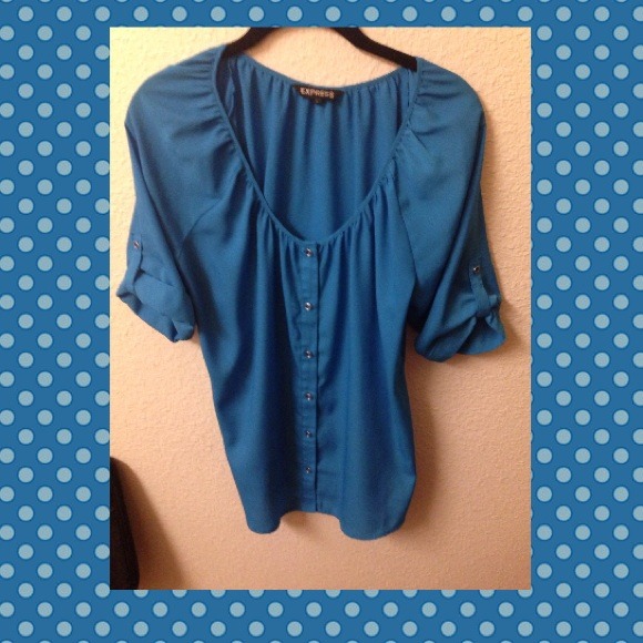 Royal blue express top size large really cute great for the office setting like new condition it is a button up and has the decorative buttons on the sleeves