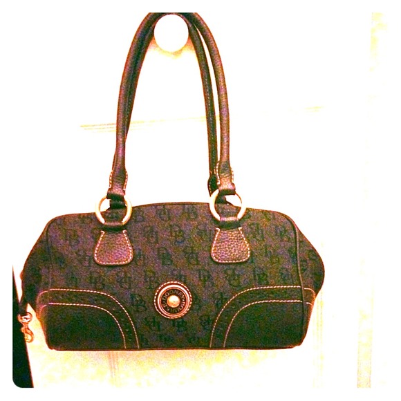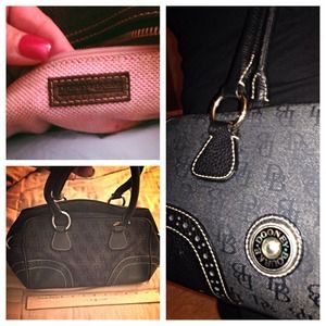 DOONEY BOURKE Retro Signature Classic Satchel in Black. Very good condition on outside. There are ink stains inside that seem to be permanent. Still carries well. H 6.5" x W 5.5" x L 11.5". One inside zip pocket. Cell phone pocket. Inside key hook.
