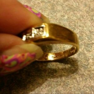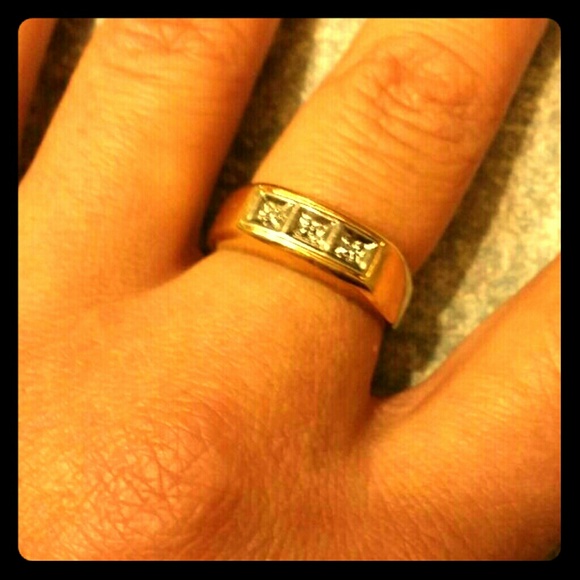 Size 8 14kt ring. 3 diamond chips set in sterling silver casing. Gold is around the whole band. Up for offers and bundles and selective trades