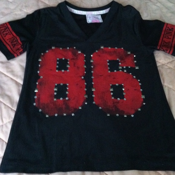Victoria Secret Pink Bulldogs Distressed Style Rhinestone Jersey. EUC & super cute! Size :XS but can fit XS or S