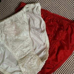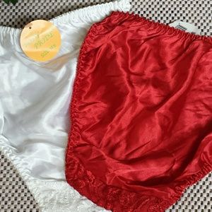 💞(willing to bundle for a cheaper price)💞 2 piece body pride panties beautiful set red and white they are satiny soft with lave in the front size Medium.💞