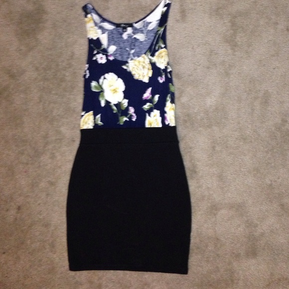 Incredibly cute floral dress with a black skirt like bottom! Looks great with some cute sandals or with heels!