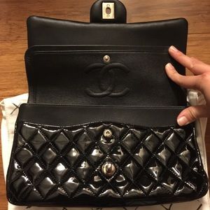 Black patent authentic chanel handbag. Like new. Unfortunately I only have the dustbag.willing to sell for a low price via pal