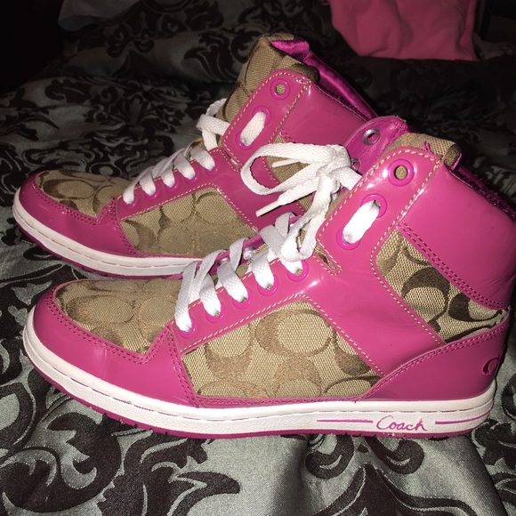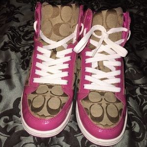 Authentic coach Hightops, tan and pink. Barely worn. Size 6-1/2 woman's