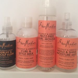 Shea Moisture African Black Soap- Dry Scalp Elixir, Curl & Style Milk, Curl Mousse, & Moisture Shine... Didn't work on my hair. 75% Full!