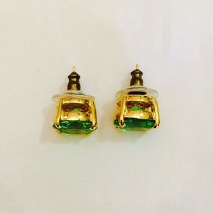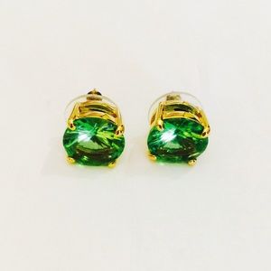 Kate Spade gold-plated crystal green stud earrings. Lime green. Round cut, faceted glass stone in pretty green. 12k gold-plated mixed metal. Approximate diameter is 1/2". Barely worn!