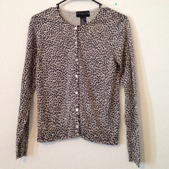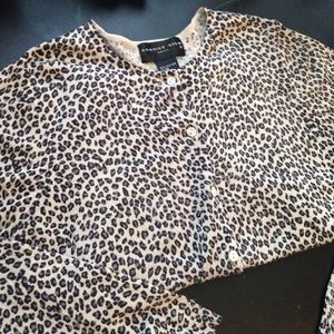 August Silk Knits Gray Animal Print Botton Down AUGUST SILK Knits