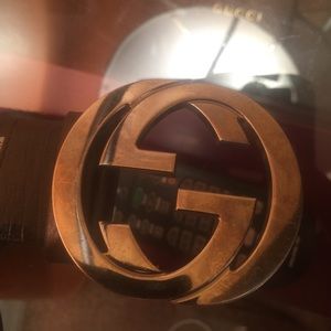 100% authentic leather Gucci belt . Brown color . Some damages,middle of Gucci logo peeling off as shown in the last picture