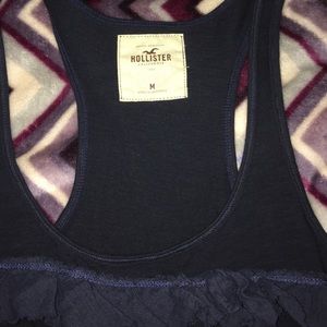 Worn a handful of times. Super cute dark blue/black top with dark blue ruffles across the top. Size medium but fits more like a small.
