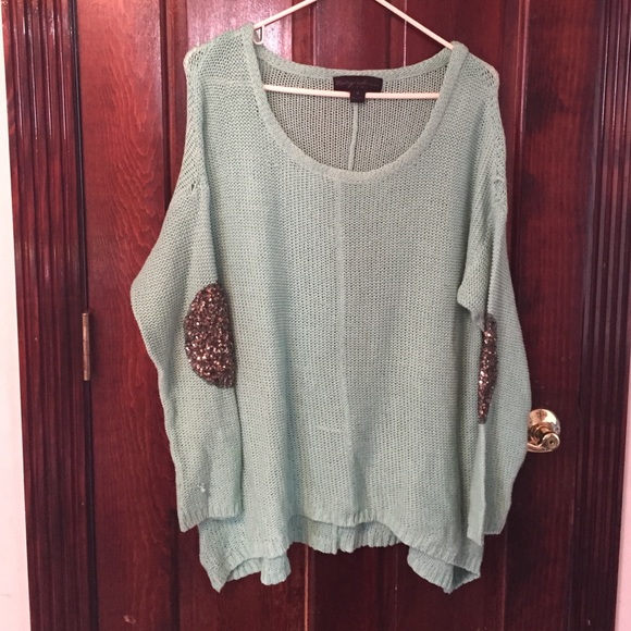 From lord and Taylor, mint green with chopper sequin patches on sleeves on elbow