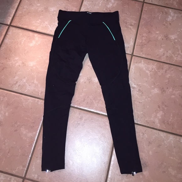 Black leggings with teal, zipper by the ankles