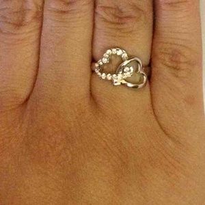 Cute silver double hearts ring with rhinestones size 7 new never worn costume jewelry