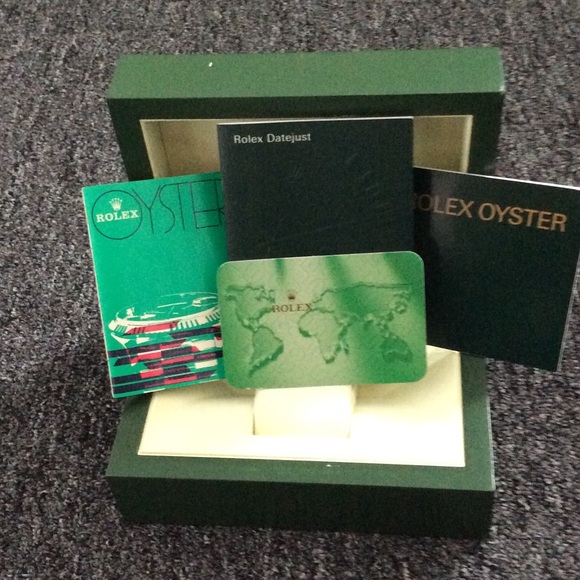 Includes a Rolex Datejust, official chronometer certification, a your Rolex oyster book, and a card with dates on it. More pictures available.