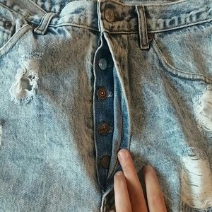 Handmade distressed hi-waisted shorts. Old levis. Acid wash look. Button up shorts as shown in the last pic. And I did sew the holes on the butt shown in the 3rd pic!