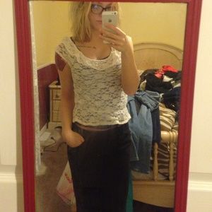 Pretty and very flattering cream lace top by Selena Gomez's brand Dream Out Loud. When I bought this I didn't realize that this was a girls XL! It fits like a juniors XS! Perfect for the office, interviews, or just a nice night out. I love that you can put different color tanks underneath to switch it up! I really love this shirt, I just don't wear it much anymore since I'm always in scrubs now! Make me an offer!