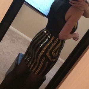 Perfect for a night out. New never worn sequin hot gold and black dress!