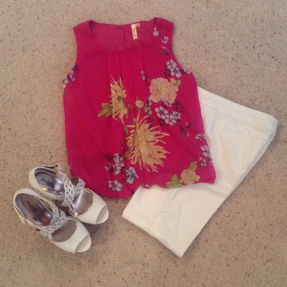 This pairing screams Spring/Summer. The Floral Blouse can be worn with so many items. The tuxedo style pants is by Madison Studio in size 2P. If you are interested in the pant please message me for measurements.