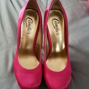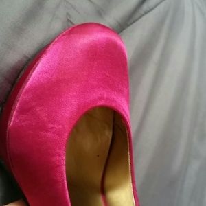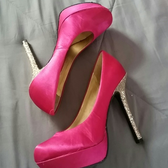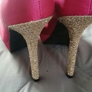 Hot pink heels with sparkly heels, worn once, small stain on the last pic. Comes with box