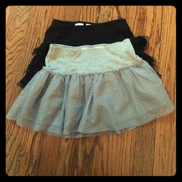 First one is silver with glitter accents and the second black with very little glitter accents, both have just enough poof and can be dressed up or down