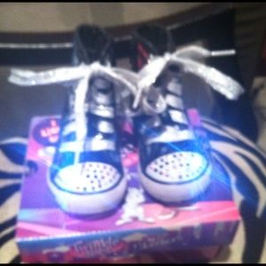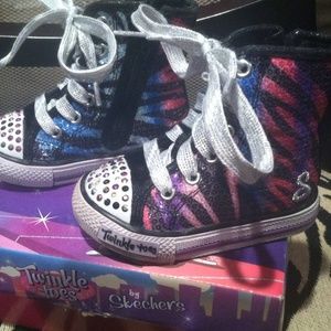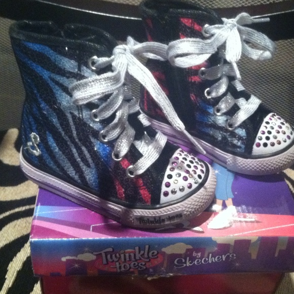 Rainbow zebra sequence sketchers twinkle toes. So Cute!! Toddler size 5. Zipper on the inner side of shoe. Twinkles still work as seen in pic. Still in great condition.