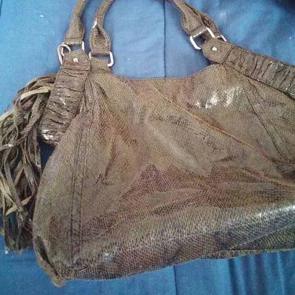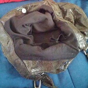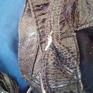 Snake skin print, olive green Shoulder strap Very good shape but gently used Snap closure