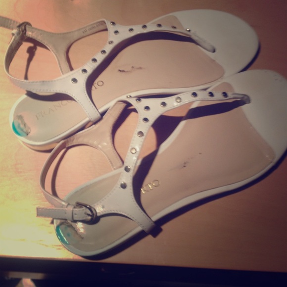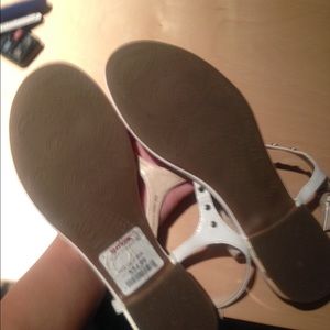 Cute white flat sandals with gold studs. From TJ max worn only a couple of times and have just been in the closet forever.