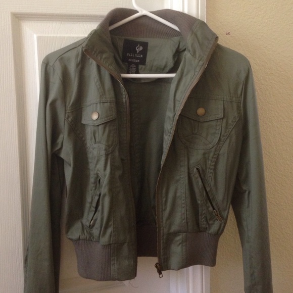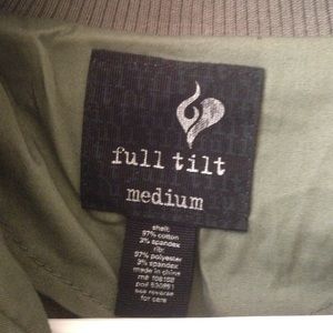 This is a Full Tilt (Tilly's brand) olive green military jacket in a size medium.