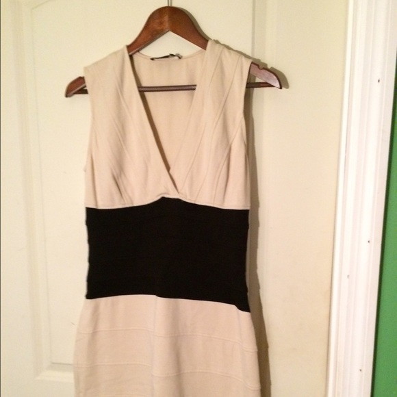 Cute stretchy banded dress. Color block. Knee length. Work appropriate. Fitted style. Very flattering. Thicker fabric perfect for cooler months and layering. Color is cream and black. EUC/GUC