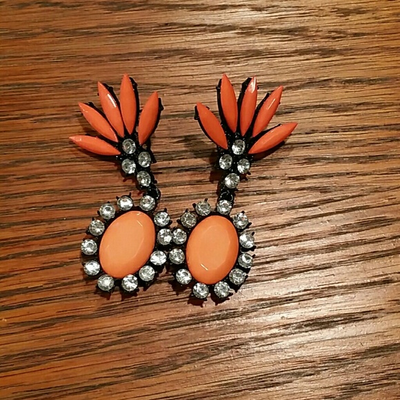 Orange and black earrings with small diamonds.
