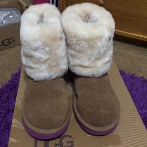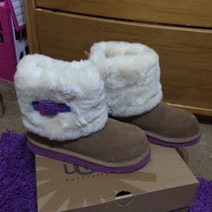 Adorable kids ugg boots size 4. Worn a few times by my daughter and no longer fit. They are in great condition and you can get much more use out of them.