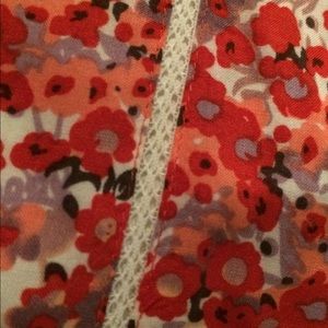 This dress has such a vintage feel. It has a matching belt. Button from top to bottom. Adjustable straps. Crochet trip brought through the front of the dress as well as at the neckline. The neckline also has a ruffle trim as well. Knee length. EUC...only wore 1 time. Silky lining.