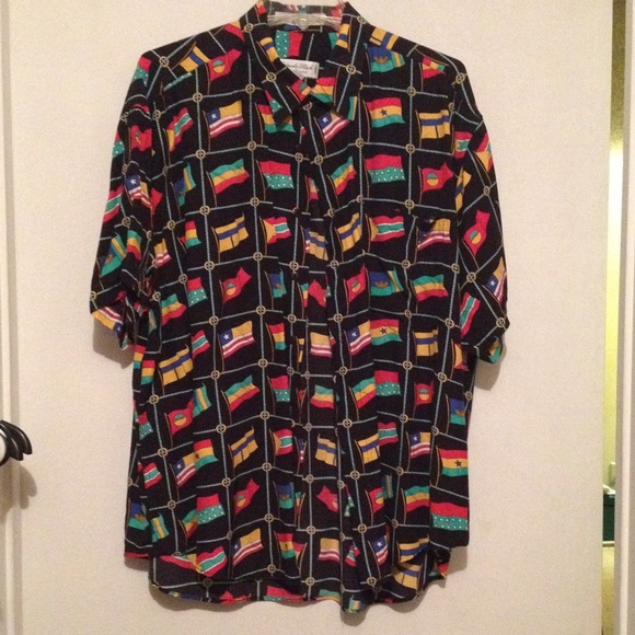 Flag print. Vintage short sleeve button up shirt