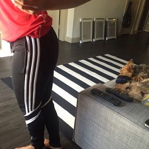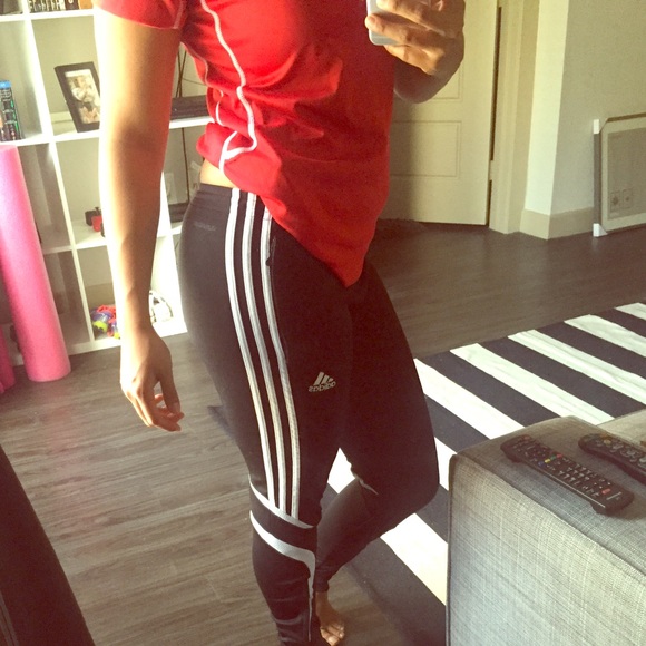 Pre owned adidas soccer pants , they are a bit to small for me . Super skinny leg, zippers at the ankles . Great condition . No pealing. Hardly even used . NO TRADES !! Exactly 38in long .